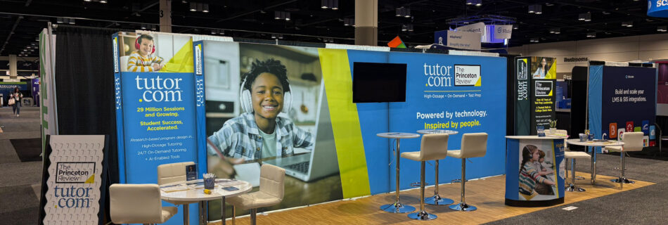 Recently we were asked by Tutor.com to produce a 20ft Backlit Popup and Modular Backwall Display. They had a 10×30 space and wanted to fill the space with eye-catching backlit graphics since they are an online learning tutoring company. Also wanted the displays to be modular to use in a 10×10 space for future shows. …