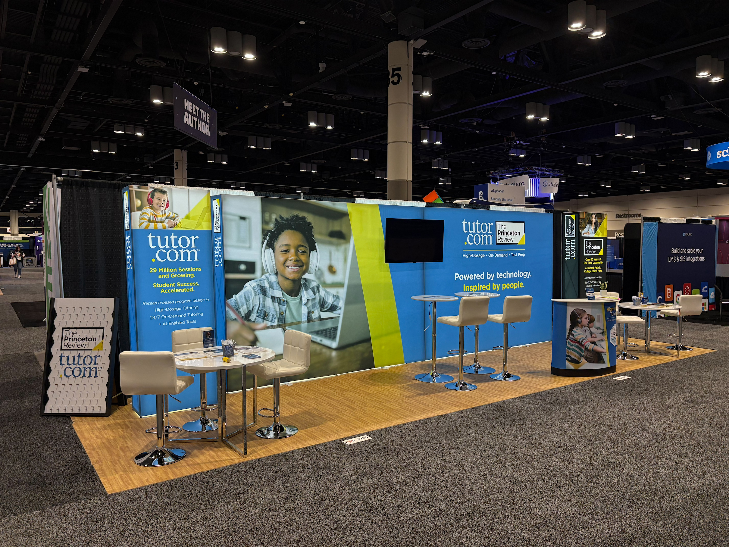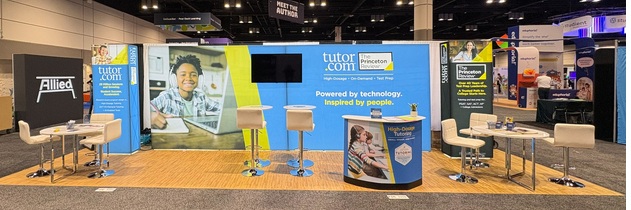 Recently we were asked by Tutor.com to produce a 20ft Backlit Popup and Modular Backwall Display. They had a 10×30 space and wanted to fill the space with eye-catching backlit graphics since they are an online learning tutoring company. Also wanted the displays to be modular to use in a 10×10 space for future shows.